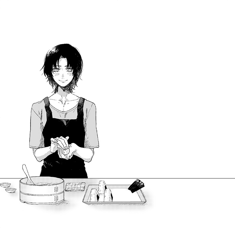 炊きあがった米をおひつに移し、ボウルに入れた水と、それから布巾を用意する。塩と、あとそれから西尾のおばあちゃんからもらった梅干し。父の買ってくれたぶかぶかのエプロンの紐を結びなおして、一騎はよしと気合を入れた。